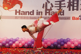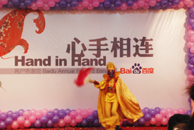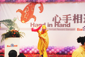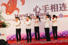 陽光絢爛,暖暖的冬風(fēng)輕拍著臉蛋,心情格外的爽快。2008年12月20日,“心手相連”百度客戶答謝會(huì)在鹽城山青水秀綠色生態(tài)美食園隆重舉行,200多人的會(huì)場(chǎng)坐無虛席!此次會(huì)議可謂“眾星云集”,泰州名主持小柏?fù)?dān)任此次會(huì)議的主持,我們也有幸邀請(qǐng)到百度客服經(jīng)理張鵬擔(dān)任此次會(huì)議的主講。午宴開始前百度渠道部經(jīng)理晟皞的祝酒詞,百度市場(chǎng)部經(jīng)理李方巖的“友情客串”,為此會(huì)議的舉辦增色不少。