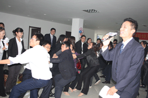 11月7日下午,思科10月銷售表彰大會(huì)在鹽城國(guó)際軟件園5樓召開(kāi)。這次我們以別開(kāi)生面的方式開(kāi)展了這次銷售大會(huì)。會(huì)議開(kāi)始,我們并沒(méi)有向往常一樣頒發(fā)獎(jiǎng)項(xiàng)。在主持人的帶領(lǐng)下,我們玩了大量的團(tuán)隊(duì)游戲,游戲提高了我們的熱情,大家都興致高漲,不僅放松了一個(gè)月以來(lái)緊張的心情,也給我們帶來(lái)了無(wú)比的快樂(lè)。