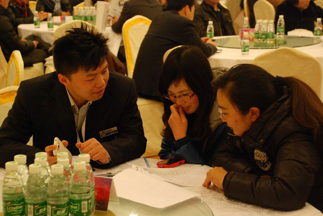 會(huì)議開(kāi)始前,客戶與員工間的交流